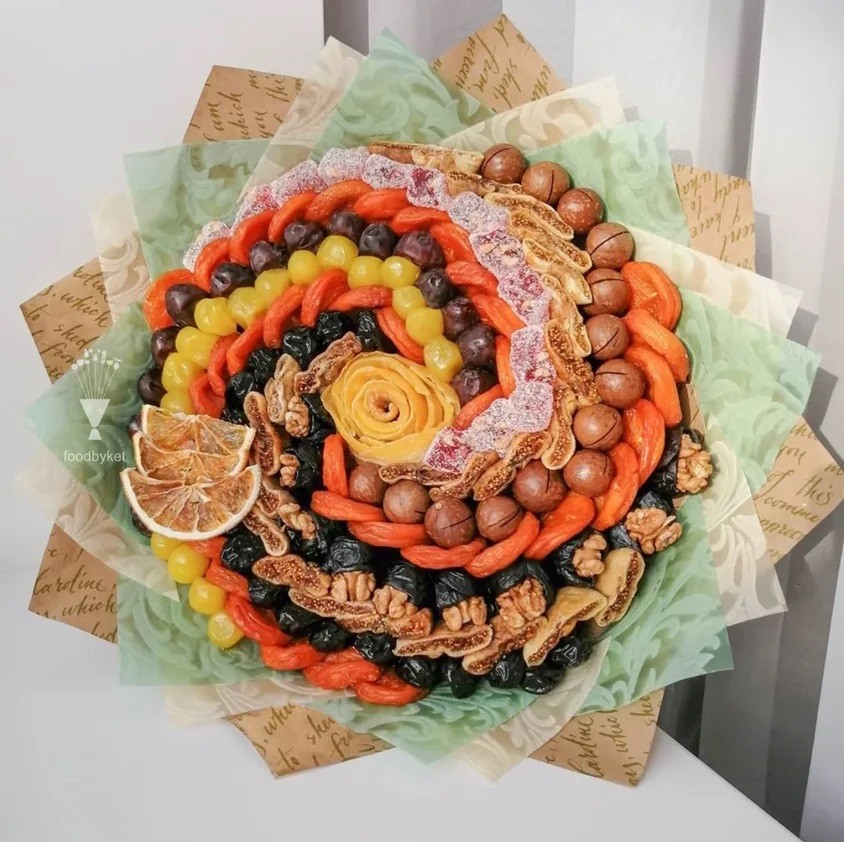 Букет из сухофруктов «Медовик» станет отличным дополнением на любом праздничном столе. Уникальное сочетание красоты и пользы не только обеспечит хорошее настроение, но и поможет укрепить здоровье. Сухофрукты с медом – настоящий кладезь витаминов, необходимых организму зимой и летом. Вкусный букет – один из лучших вариантов подарка, которым можно наслаждаться на протяжении долгого времени, не беспокоясь о его сохранности. Если его потребуется срочно заказать и купить Москве, мы готовы выполнить доставку в тот же день в заранее оговоренное время. Поскольку цена букета из сухофруктов превышает 4000 рублей, услуга предоставляется бесплатно.